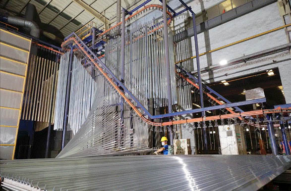 公司現(xiàn)擁有鋁錠熔鑄、均質(zhì)處理、擠壓、拋光、陽(yáng)極氧化著色、電泳涂漆、靜電粉末噴涂、氟碳噴涂、木紋噴涂、穿條隔熱、深加工、精加工等系列生產(chǎn)線(xiàn)。