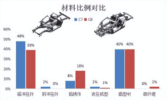 白車身減重是汽車實現輕量化的關鍵所在,鋁型材框架在車身結構中的應用已經相當普遍。以其較高的比強度、良好的耐腐蝕性、成形性以及可連接性等一系列優良特性成為白車身減重的首選材料之一。例如,奧迪A8、寶馬7系、奔馳S級等高端車型都采用了鋁制車身框架。這種框架不僅可以顯著減輕車身重量,提高燃油效率,還可以增強車身的剛性和穩定性。數據顯示,采用鋁型材框架的車身可以比傳統鋼制車身減輕約30%的重量,從而降低燃油消耗約20%。鋁合金目前在汽車白車身上常用的變形鋁合金包括5xxx系、6xxx系,7xxx系鋁合金由于成本原因應用較少。